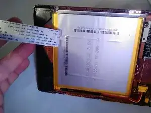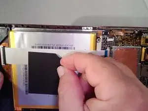 Аккуратно удалите серую квадратную прокладку, приклеенную к белому лентовому кабелю и аккумулятору, медленно потянув.