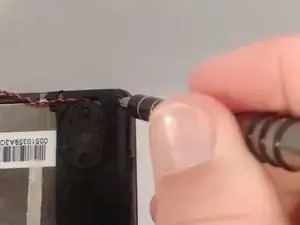 Найдите и удалите 3 чёрных винта длиной 4,0 мм на панели динамика, используя отвёртку J00.