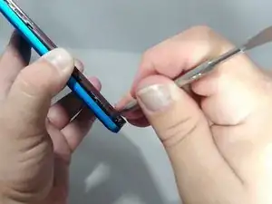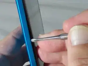 С кончиком тонкого металлического лопатки в месте, совершайте поддевательное движение, продвигая лопатку вниз по стороне до угла устройства.