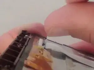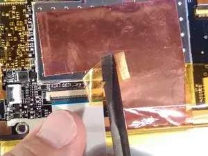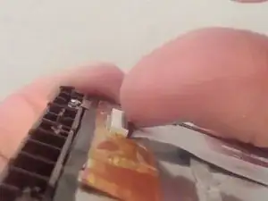 Найдите и удалите жёлтую целлофановую ленту с ZIF-разъёма лентового кабеля дисплейного модуля.