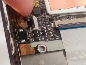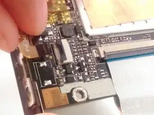 Найдите ZIF-разъём лентового кабеля кнопок громкости, питания и «домой».
