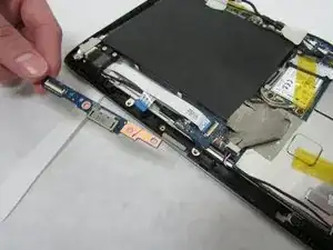 Используйте изогнутые пинцеты, чтобы отсоединить белый разъём между материнской платой и батареей, расположенный посередине стороны, противоположной док-порту.