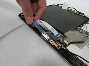 Отсоедините сложенный белый ленточный кабель на плате док-порта.