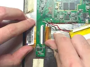 Снимите два ZIF-разъёма, прикреплённых к материнской плате, поднимая чёрные защёлки вверх, а затем оттянув ленточный кабель.