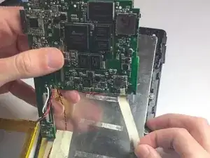Поднимите материнскую плату, чтобы освободить её от планшета.
