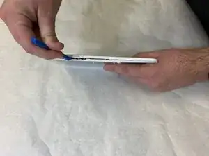 Вставьте пластиковый инструмент между передней и задней оболочкой и аккуратно разделите.