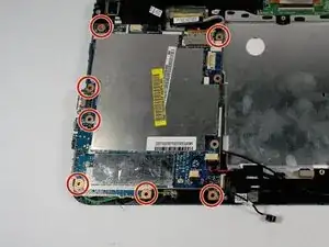 После отключения всех кабелей от материнской платы отвёрткой Phillips #00 удалите оставшиеся семь винтов длиной 3,0 мм.