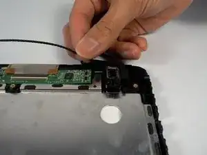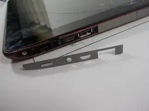 Вставьте пластиковую распорку и аккуратно снимите серые боковые пластиковые панели планшета с обеих сторон.
