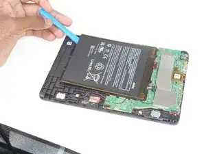 С помощью инструмента iFixit для вскрытия отключите аккумулятор от платы.
