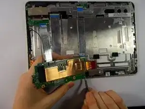 Осторожно подденьте аккумулятор планшета инструментом для вскрытия и извлеките его.