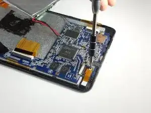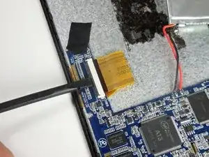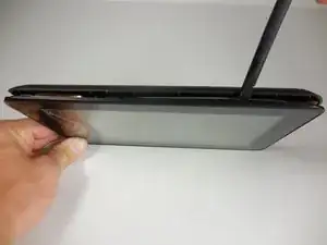 Используйте пластиковой лопаткой вдоль серебристой кромки внутри устройства, чтобы отжать экран.