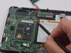 Используйте пластиковый инструмент iFixit, чтобы сделать небольшое отверстие на боку устройства и продолжайте открывать заднюю панель.