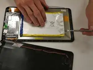Когда клей ослабнет, Вы сможете оторвать аккумулятор от экрана.