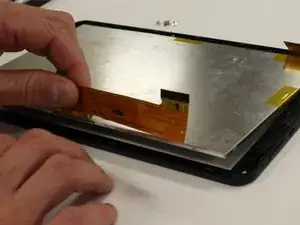 Когда экран отойдёт от дигитайзера, захватите тонкую оранжевую гибкую плату и аккуратно потяните её вверх, чтобы отделить экран от дигитайзера. Отложите экран в сторону.