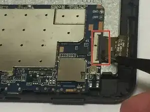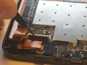 Используйте пинцет, чтобы поднять защёлку разъёма ZIF и освободить ленту.