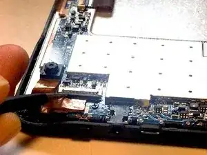 Камеру следует снять перед выполнением любых дальнейших ремонтов, чтобы избежать повреждения лент и/или камеры при снятии материнской платы.