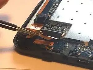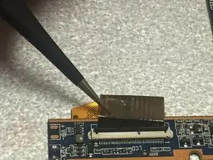 Поднимите защёлку разъёма ZIF пинцетом. Это разблокирует ленту, зафиксированную на месте.