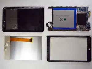 После снятия ЖК-экрана у вас должно остаться четыре основных компонента: задняя крышка, материнская плата со креплением, ЖК-экран и передняя панель.