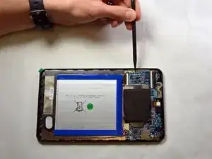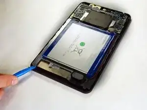 Продвигаясь по краю планшета, аккуратно подденьте заднюю панель. По мере продвижения вы услышите щелчки.