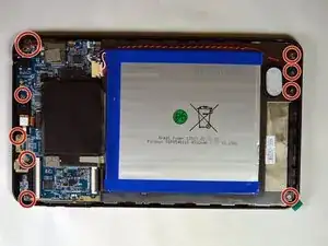 С помощью отвертки J000 открутите 10 винтов на задней панели. Когда планшет ориентирован как на фото, слева — 6 винтов, справа — 4 винта. Отложите винты в безопасное место для повторной установки.