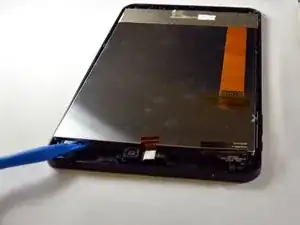 По периметру ЖК-экрана есть защёлки. Используйте лопаточку для помощи при снятии.