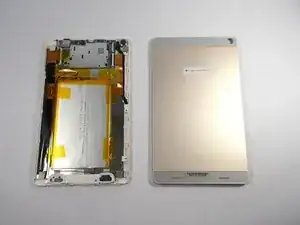 Используйте большой пластиковый инструмент для открывания, чтобы отделить заднюю панель от корпуса. Вставьте острый конец инструмента в щель и примените рычаг, чтобы дальше отделять заднюю панель от устройства.
