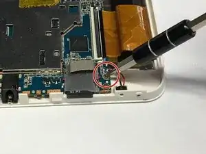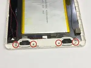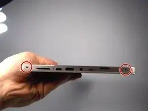 Снимите два винта в верхней части планшета, как показано на изображении, используя биту Philips J0.