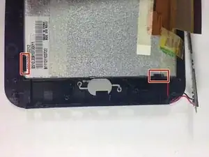 Сдвиньте серую защёлку разъёма ленточного кабеля от белого порта ленточного кабеля на плате экрана с помощью острого конца лопатки.