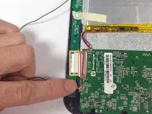 Удалите ленточный кабель из порта ленточного кабеля на плате экрана.