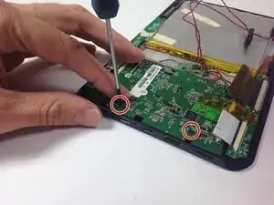 Удалите 2 винта Phillips #00 длиной 4.5 мм с материнской платы.