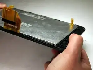 После удаления батареи и материнской платы аккуратно согните панель экрана, чтобы выдавить металлический дигитайзер, который находится на стекле и пластиковой части экрана.