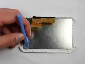 Осторожно вставьте синюю лопатку между двумя секциями планшета и проведите по периметру, разъединяя клейкое соединение.