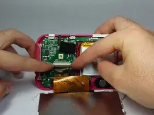 Найдите светло-серый зажим на плате и аккуратно с помощью двух указательных пальцев отсоедините чёрный ЖК-кабель от материнской платы.