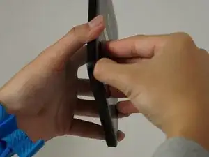 Под углом вытяните синие язычки (не показаны), чтобы удалить ленту под батареей.
