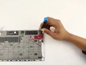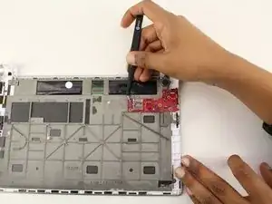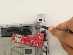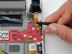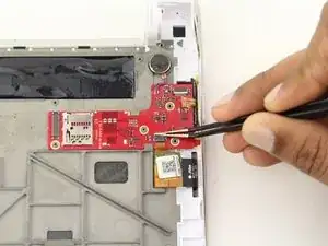 Отсоедините провод, прикреплённый к печатной плате, оттянув его с помощью пинцета.