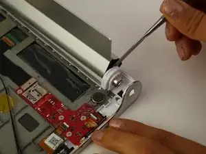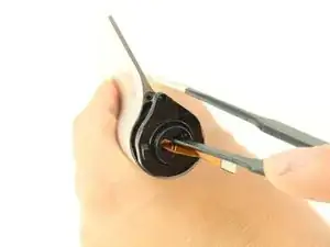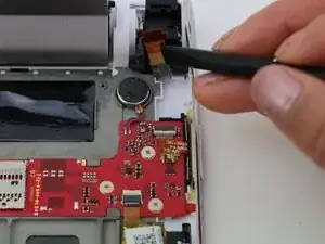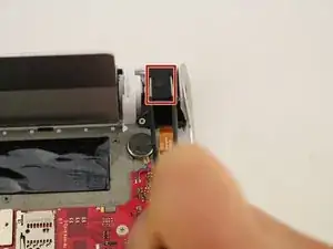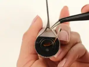 Используйте пинцет с нейлоновым наконечником, чтобы вытолкнуть камеру из пространства между кнопкой питания и подставкой.