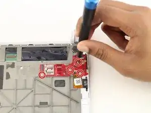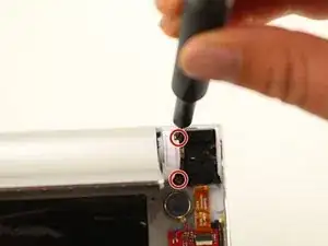 Удалите один винт 5 мм с помощью отвертки Phillips #00.