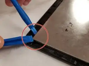 Вставьте края открывающих инструментов в зазор между экраном и корпусом экрана.