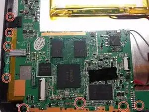 Удалите восемь винтов JIS #00 длиной 25 мм, крепящих материнскую плату.