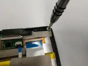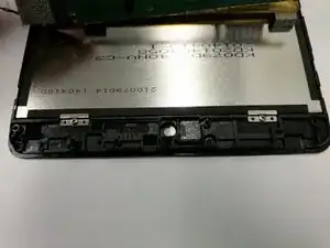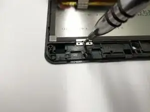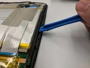 Использование металлической лопатки с правой стороны планшета должно быть достаточно, чтобы поддеть экран. Используйте пальцы, чтобы снять рамку экрана.