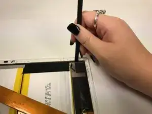 Проводите пластиковым инструментом для открытия вдоль кромки планшета между передней панелью и задней крышкой.