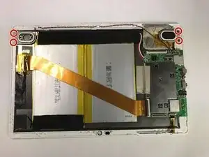 Отвинтите четыре винта длиной 4 мм, фиксирующие динамики к передней панели, используя крестовую отвёртку Phillips #000, вращая против часовой стрелки.