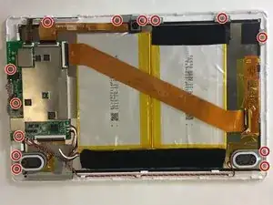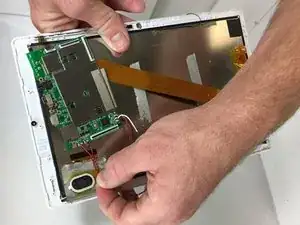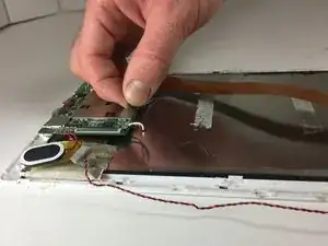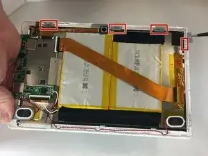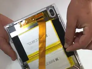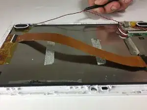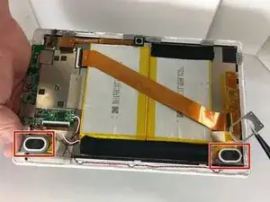 Снимите динамики с планшета, аккуратно отрывая жёлтую ленту от переднего корпуса.