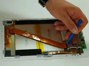 Используйте пластиковый инструмент для вскрытия, чтобы поднять последний ленточный разъём на экране.