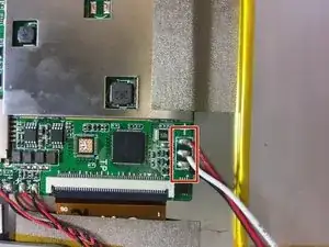 Используйте пластиковый инструмент для вскрытия, чтобы поднять защёлки ленточных разъёмов, соединяющих сенсорный дигитайзер с материнской платой.