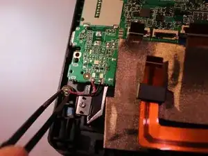 С помощью пинцета снимите электрический разъём, подключённый к батарее, чтобы отключить питание батареи.