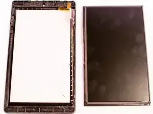 Если экран повреждён, его необходимо заменить. Для этой замены нужно работать от задней крышки к передней части планшета: замена экрана потребует снятия материнской платы, поскольку экран прикреплён к материнской плате.