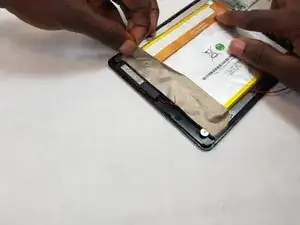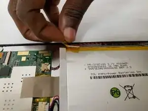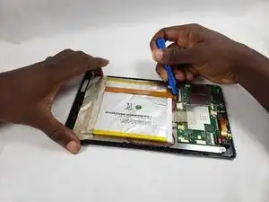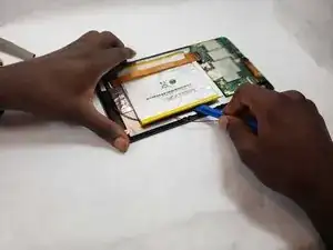 Подденьте аккумулятор от задней части ЖК-экрана с помощью инструмента для поддевания. Из-за сильного клеевого слоя между аккумулятором и экраном это может занять некоторое время.