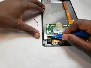 Отведите плату вперёд для зазора и начните снимать экран с помощью инструмента для поддевания.