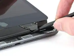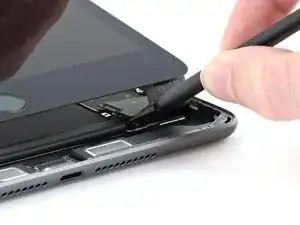 Вставьте последний инструмент для поддевания в нижнем левом углу iPad, прямо под уже установленным.